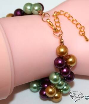 Materialen: glaskralen, glasparels, gecoated staaldraad, metaal