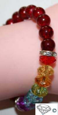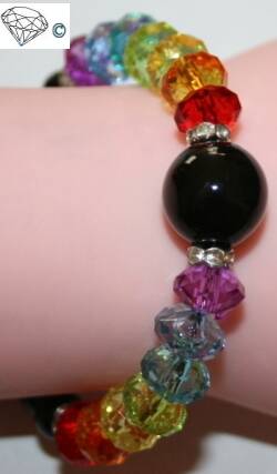 Materialen: memory wire (metaal), glas, metaal, strass, kunststof